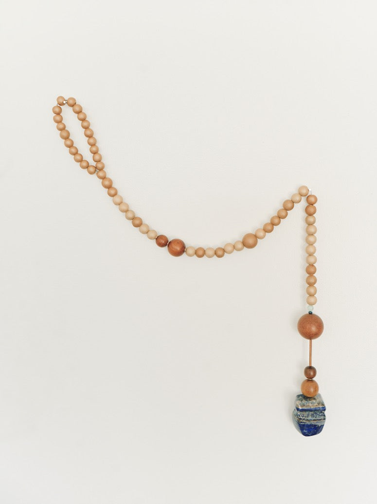 "Meticulously handcrafted by Brazilian artist, Lena, these pieces can be used as a wall hanging or laid out as table decor. This piece contains ceramic spheres colored with natural earthen pigments, wooden sanded spheres, and crystals. For Ori Lena states her inspiration from the many ways we show devotion. ""Each culture has its way of devotion, of concentration, on a mantra or in prayer. Inspired by the ancient beads of rosaries, in japamalas and in masbahas. This piece has no religion, but it is inspired by faith and these moments so personal in meditation or prayer."
